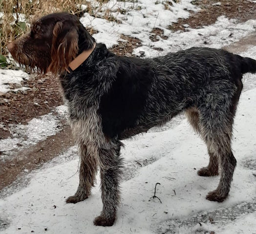 Exterior | Color | Nose | Coat Length | Coat Quality | Coat Curl | Belly Coverage | Furnishings | Skeleton | Bite | Dentition | Eye Color | Height | Length | Gun Reactivity | Character | Temperament Notes | Description | Other Notes | Field Notes | Exterior Notes |