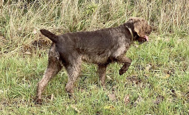Exterior | Color | Nose | Coat Length | Coat Quality | Coat Curl | Belly Coverage | Furnishings | Skeleton | Bite | Dentition | Eye Color | Height | Length | Gun Reactivity | Character | Temperament Notes | Description | Other Notes | Field Notes | Exterior Notes |