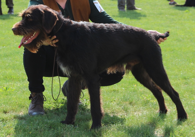 Exterior | Color | Nose | Coat Length | Coat Quality | Coat Curl | Belly Coverage | Furnishings | Skeleton | Bite | Dentition | Eye Color | Height | Length | Gun Reactivity | Character | Temperament Notes | Description | Other Notes | Field Notes | Exterior Notes |