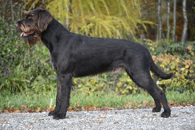 Exterior | Color | Nose | Coat Length | Coat Quality | Coat Curl | Belly Coverage | Furnishings | Skeleton | Bite | Dentition | Eye Color | Height | Length | Gun Reactivity | Character | Temperament Notes | Description | Other Notes | Field Notes | Exterior Notes |