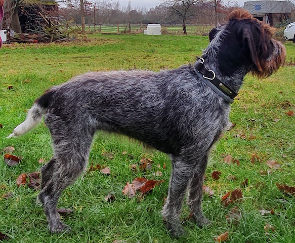 Exterior | Color | Nose | Coat Length | Coat Quality | Coat Curl | Belly Coverage | Furnishings | Skeleton | Bite | Dentition | Eye Color | Height | Length | Gun Reactivity | Character | Temperament Notes | Description | Other Notes | Field Notes | Exterior Notes |