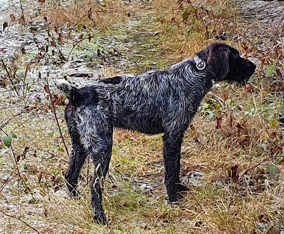 Exterior | Color | Nose | Coat Length | Coat Quality | Coat Curl | Belly Coverage | Furnishings | Skeleton | Bite | Dentition | Eye Color | Height | Length | Gun Reactivity | Character | Temperament Notes | Description | Other Notes | Field Notes | Exterior Notes |