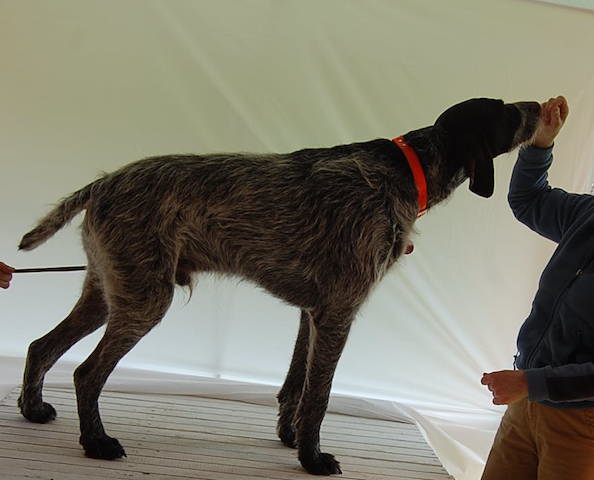 Exterior | Color | Nose | Coat Length | Coat Quality | Coat Curl | Belly Coverage | Furnishings | Skeleton | Bite | Dentition | Eye Color | Height | Length | Gun Reactivity | Character | Temperament Notes | Description | Other Notes | Field Notes | Exterior Notes |