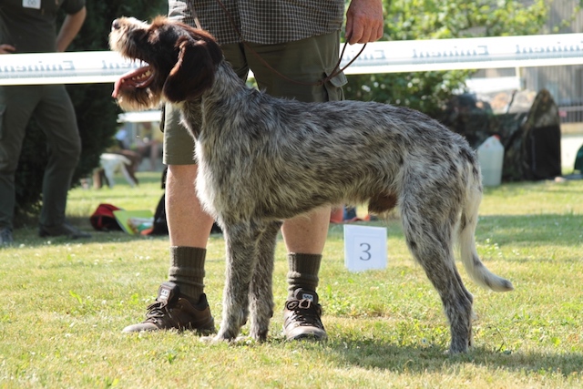 Exterior | Color | Nose | Coat Length | Coat Quality | Coat Curl | Belly Coverage | Furnishings | Skeleton | Bite | Dentition | Eye Color | Height | Length | Gun Reactivity | Character | Temperament Notes | Description | Other Notes | Field Notes | Exterior Notes |