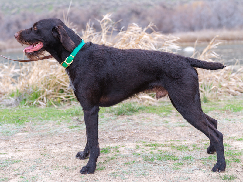Exterior | Color | Nose | Coat Length | Coat Quality | Coat Curl | Belly Coverage | Furnishings | Skeleton | Bite | Dentition | Eye Color | Height | Length | Gun Reactivity | Character | Temperament Notes | Description | Other Notes | Field Notes | Exterior Notes |