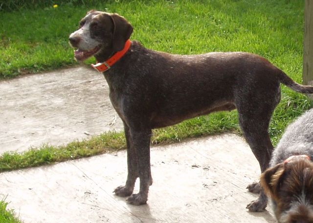 | Brianna de Los Altos | NAVHDA/CF-000031; GRB/100 | liver ticked roan | conformation 4/ coat 3 | 57.0 | scissors | complete | OK | ||