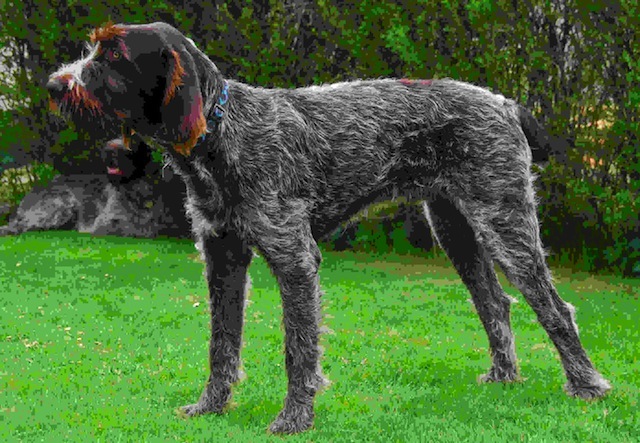 Exterior | Color | Nose | Coat Length | Coat Quality | Coat Curl | Belly Coverage | Furnishings | Skeleton | Bite | Dentition | Eye Color | Height | Length | Gun Reactivity | Character | Temperament Notes | Description | Other Notes | Field Notes | Exterior Notes |