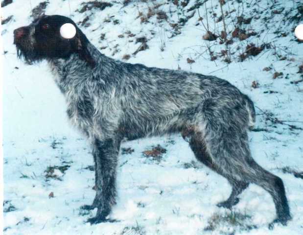 Exterior | Color | Nose | Coat Length | Coat Quality | Coat Curl | Belly Coverage | Furnishings | Skeleton | Bite | Dentition | Eye Color | Height | Length | Gun Reactivity | Character | Temperament Notes | Description | Other Notes | Field Notes | Exterior Notes |