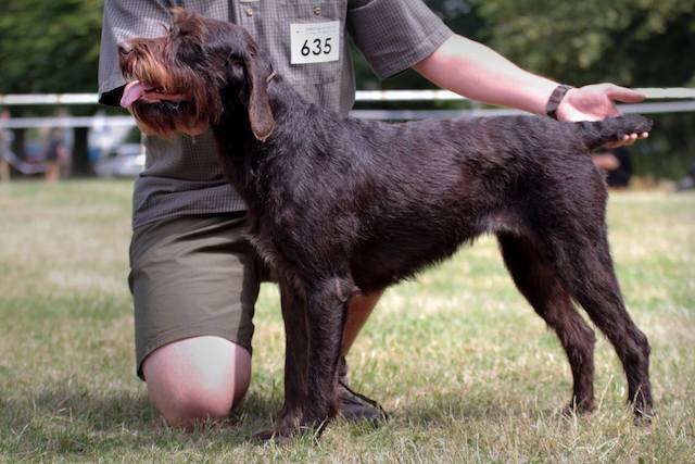 Exterior | Color | Nose | Coat Length | Coat Quality | Coat Curl | Belly Coverage | Furnishings | Skeleton | Bite | Dentition | Eye Color | Height | Length | Gun Reactivity | Character | Temperament Notes | Description | Other Notes | Field Notes | Exterior Notes |