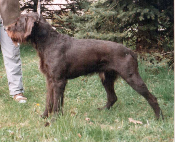 Exterior | Color | Nose | Coat Length | Coat Quality | Coat Curl | Belly Coverage | Furnishings | Skeleton | Bite | Dentition | Eye Color | Height | Length | Gun Reactivity | Character | Temperament Notes | Description | Other Notes | Field Notes | Exterior Notes |
