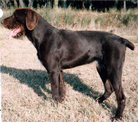 Exterior | Color | Nose | Coat Length | Coat Quality | Coat Curl | Belly Coverage | Furnishings | Skeleton | Bite | Dentition | Eye Color | Height | Length | Gun Reactivity | Character | Temperament Notes | Description | Other Notes | Field Notes | Exterior Notes |