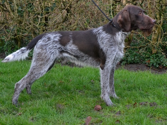 Exterior | Color | Nose | Coat Length | Coat Quality | Coat Curl | Belly Coverage | Furnishings | Skeleton | Bite | Dentition | Eye Color | Height | Length | Gun Reactivity | Character | Temperament Notes | Description | Other Notes | Field Notes | Exterior Notes |