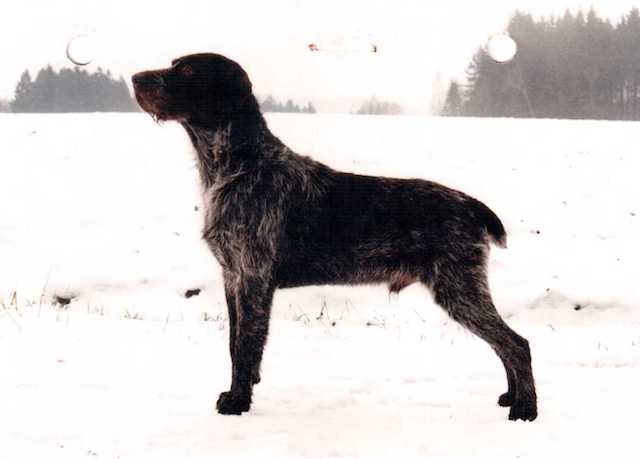 Exterior | Color | Nose | Coat Length | Coat Quality | Coat Curl | Belly Coverage | Furnishings | Skeleton | Bite | Dentition | Eye Color | Height | Length | Gun Reactivity | Character | Temperament Notes | Description | Other Notes | Field Notes | Exterior Notes |