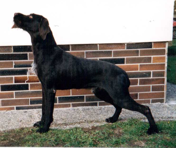 Exterior | Color | Nose | Coat Length | Coat Quality | Coat Curl | Belly Coverage | Furnishings | Skeleton | Bite | Dentition | Eye Color | Height | Length | Gun Reactivity | Character | Temperament Notes | Description | Other Notes | Field Notes | Exterior Notes |