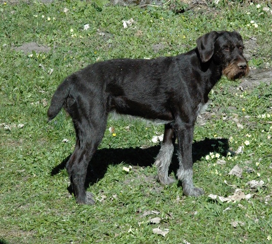 Exterior | Color | Nose | Coat Length | Coat Quality | Coat Curl | Belly Coverage | Furnishings | Skeleton | Bite | Dentition | Eye Color | Height | Length | Gun Reactivity | Character | Temperament Notes | Description | Other Notes | Field Notes | Exterior Notes |