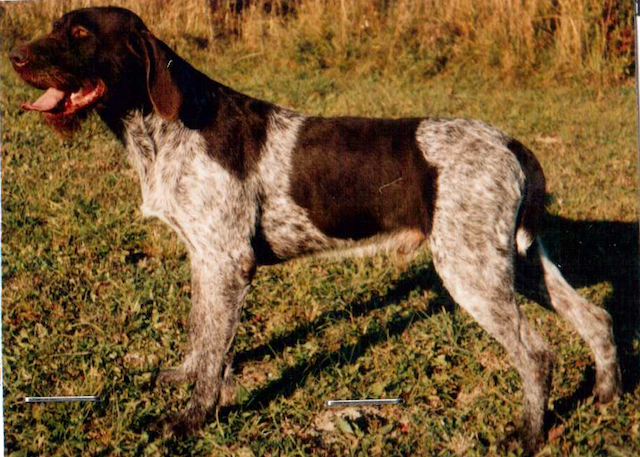 Exterior | Color | Nose | Coat Length | Coat Quality | Coat Curl | Belly Coverage | Furnishings | Skeleton | Bite | Dentition | Eye Color | Height | Length | Gun Reactivity | Character | Temperament Notes | Description | Other Notes | Field Notes | Exterior Notes |