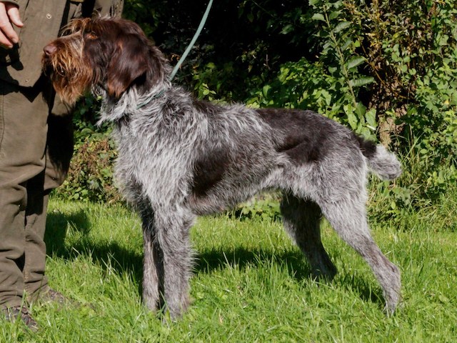 Exterior | Color | Nose | Coat Length | Coat Quality | Coat Curl | Belly Coverage | Furnishings | Skeleton | Bite | Dentition | Eye Color | Height | Length | Gun Reactivity | Character | Temperament Notes | Description | Other Notes | Field Notes | Exterior Notes |
