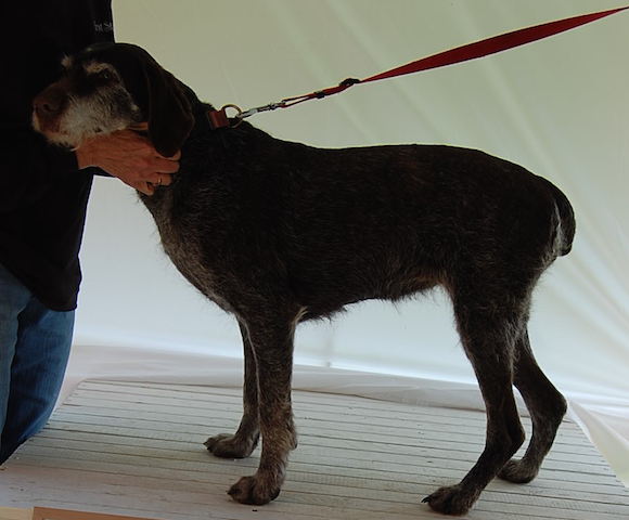 Exterior | Color | Nose | Coat Length | Coat Quality | Coat Curl | Belly Coverage | Furnishings | Skeleton | Bite | Dentition | Eye Color | Height | Length | Gun Reactivity | Character | Temperament Notes | Description | Other Notes | Field Notes | Exterior Notes |