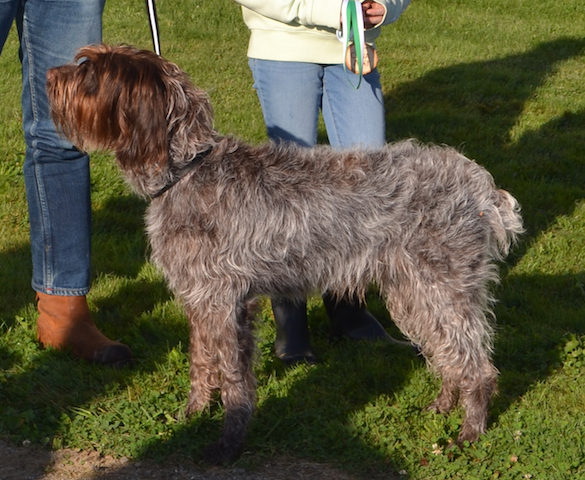 Exterior | Color | Nose | Coat Length | Coat Quality | Coat Curl | Belly Coverage | Furnishings | Skeleton | Bite | Dentition | Eye Color | Height | Length | Gun Reactivity | Character | Temperament Notes | Description | Other Notes | Field Notes | Exterior Notes |