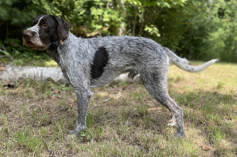 | Oquassa's Aziscohos | CFRB/REG3/993-23; FCPR/RI.P23.049; NAVHDA/CF-000181; UKC/R334-636 | liver ticked roan | conformation 2/ coat 3 | 60 | scissors | narrow lower jaw, complete | Okay |