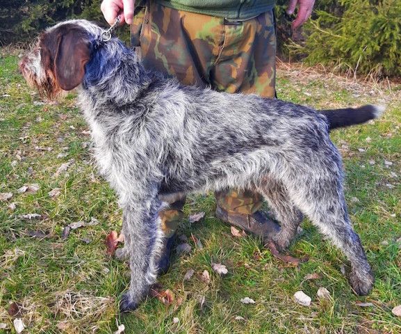 Handler | Date | Místo | Vrozená chuť k práci | Hledání - systém | Hledání -rychlost | Hledání -vytrvalost | Vystavování | Postupování | Nos | Klid před zvěří pernatou | Klid před zvěří srstnatou | Chování po výstřelu | Zájem o stopu zvěře | Vodění na řemeni | Poslušnost | Celkový počet bodů | cena | Lovecká upotřebitelnost |