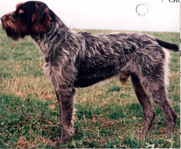 Exterior | Color | Nose | Coat Length | Coat Quality | Coat Curl | Belly Coverage | Furnishings | Skeleton | Bite | Dentition | Eye Color | Height | Length | Gun Reactivity | Character | Temperament Notes | Description | Other Notes | Field Notes | Exterior Notes |